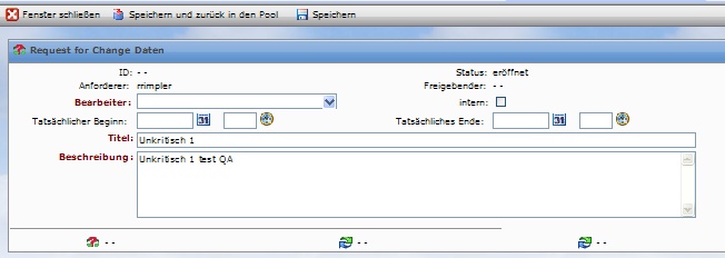 , um die Änderungsanfrage / RfC mit den eingegebenen Daten zu speichern. Ihre Änderungsanfrage / RfC erhält damit automatisch den Status „angefordert“.