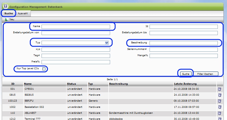 Select with the help of the search function exactly the Configuration Item that you would likeprocess.
