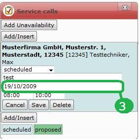 Click on the calendar for the day (1.) , at which the appointment was previously provided.