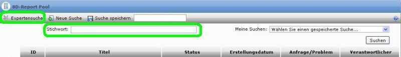 2) In der folgenden Ansicht suchen Sie bitte einfach per Stichworteingabe nach einem Report. Eine weitere Möglichkeit ist die Expertensuche. Dort können Sie über verschiedene Kriterien suchen lassen.
