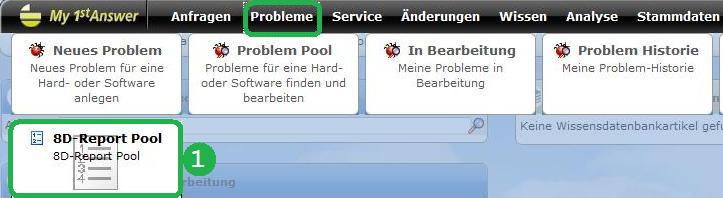 1) Klicken Sie bitte im Hauptmenü auf Probleme, danach auf das Untermenü 8D-Report-Pool.