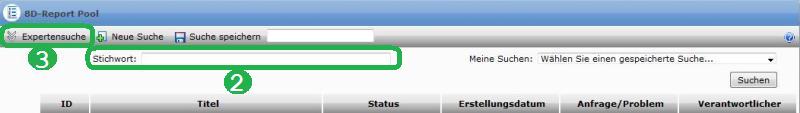 2) In der folgenden Ansicht suchen Sie bitte einfach per Stichworteingabe nach einem Report. Eine weitere Möglichkeit ist die Expertensuche. Dort können Sie über verschiedene Kriterien suchen lassen.